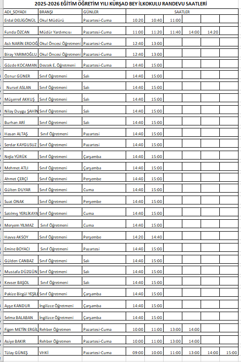 ÖĞRETMEN VELİ GÖRÜŞMESİ RANDEVU SAATLERİ